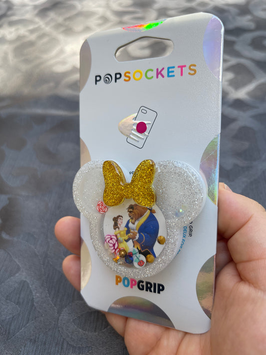 Beauty & Beast Mouse w/bow Shaker Phone Grip-White