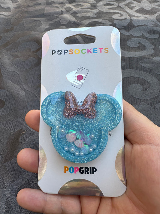 The Ocean is calling Mouse w/bow Shaker Phone Grip-Blue