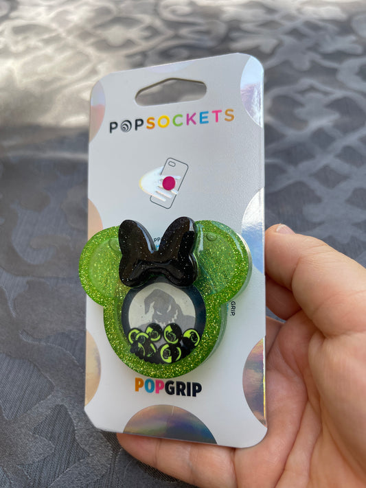 Oogie Boogie mouse w/bow Shaker Phone Grip-Neon Green
