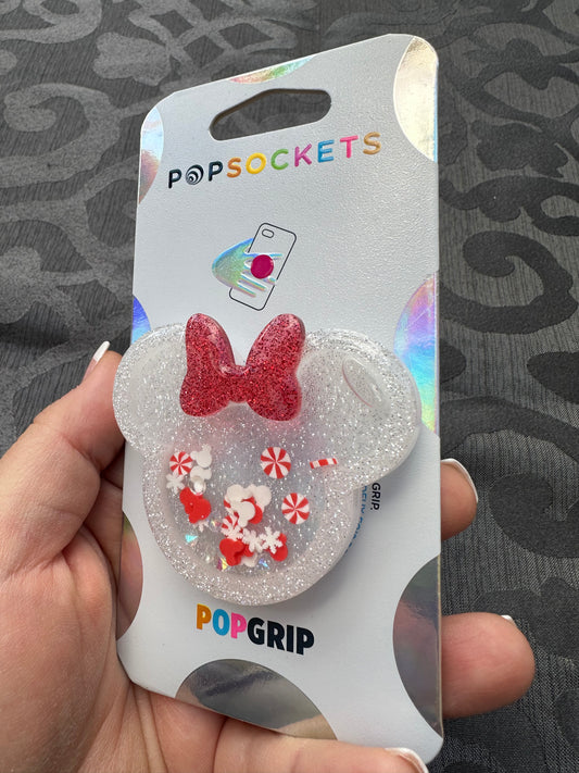 Candy Cane Mouse w/Bow Shaker Phone Grip-White