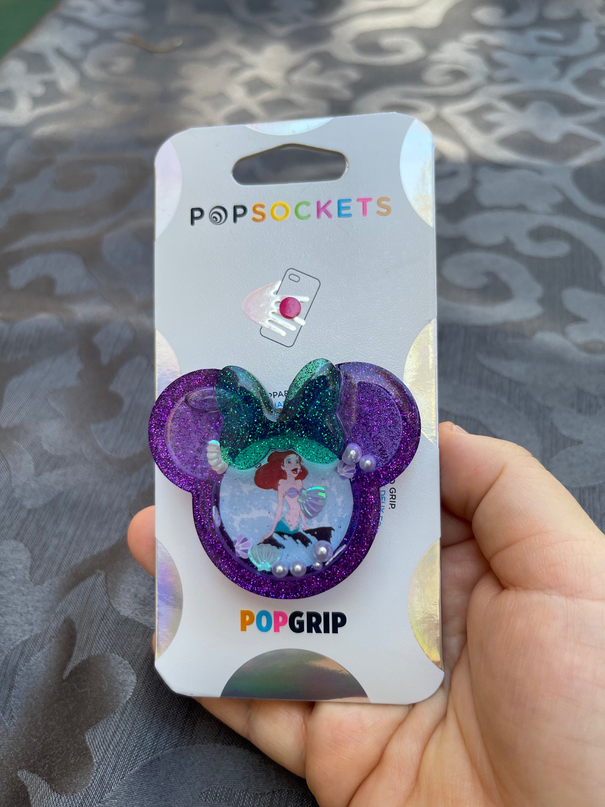 Ariel Mouse w/bow Shaker Phone Grip-Purple