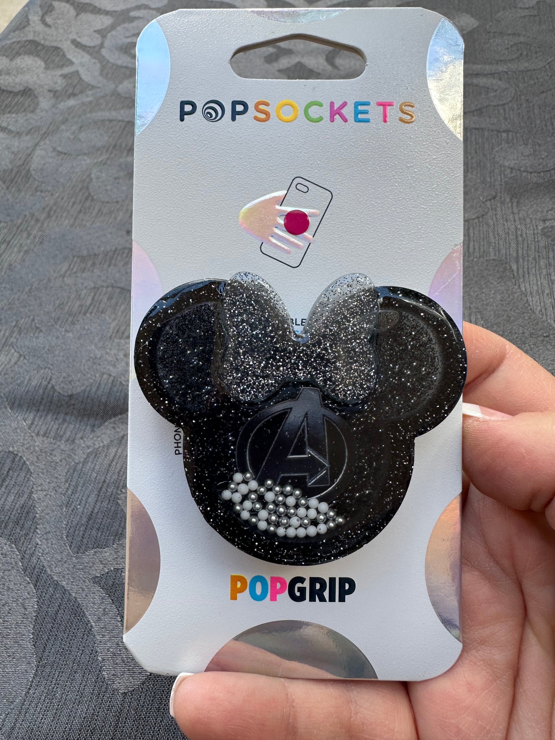 Avengers Mouse w/bow Shaker Phone Grip-Silver