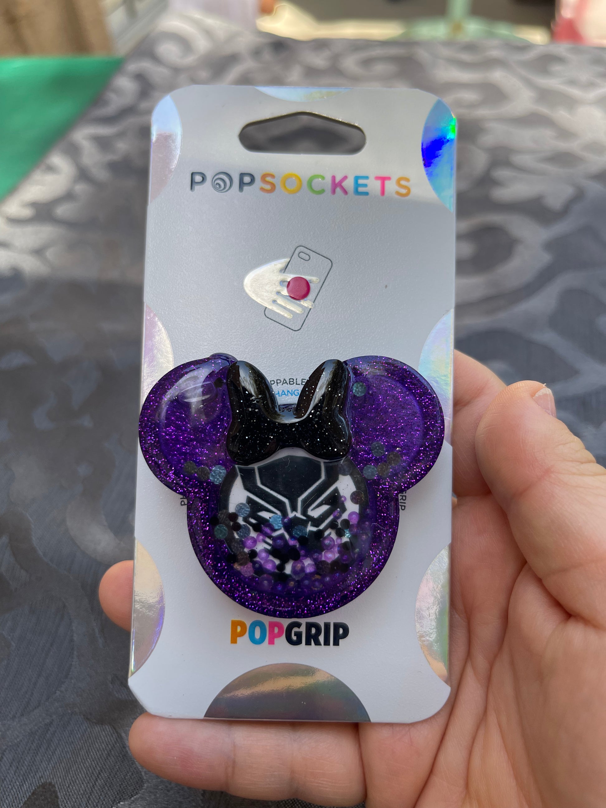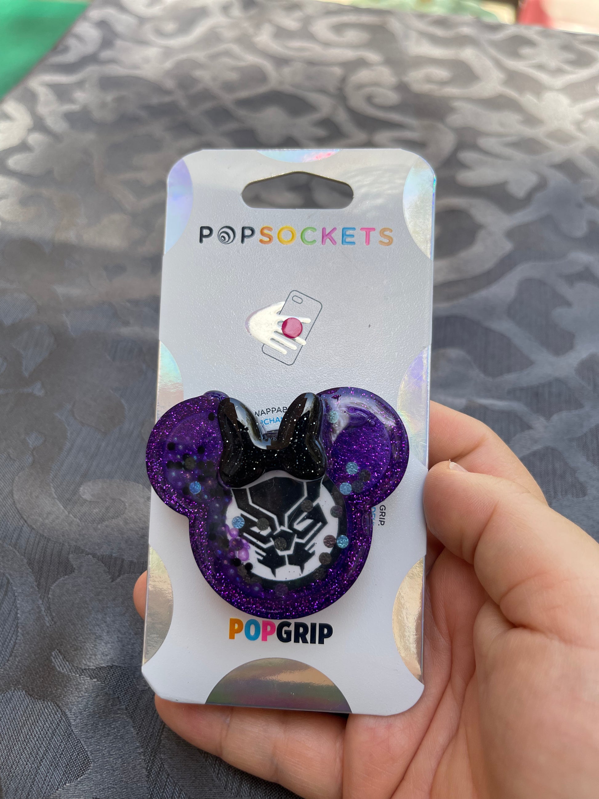 Black Panther Mouse w/bow Shaker Phone Grip-Purple