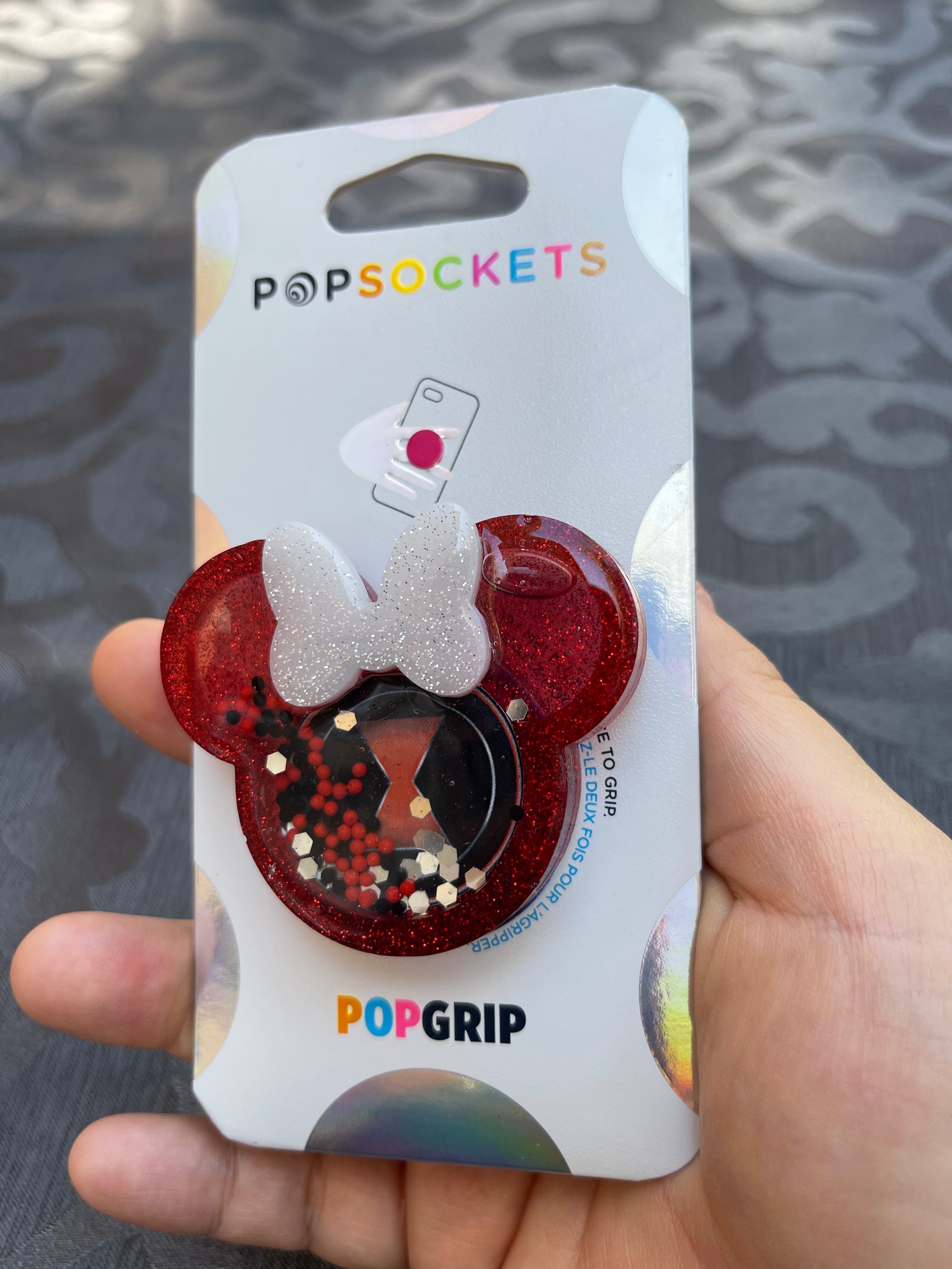 Black Widow Mouse w/bow Shaker Phone Grip-Dark Red