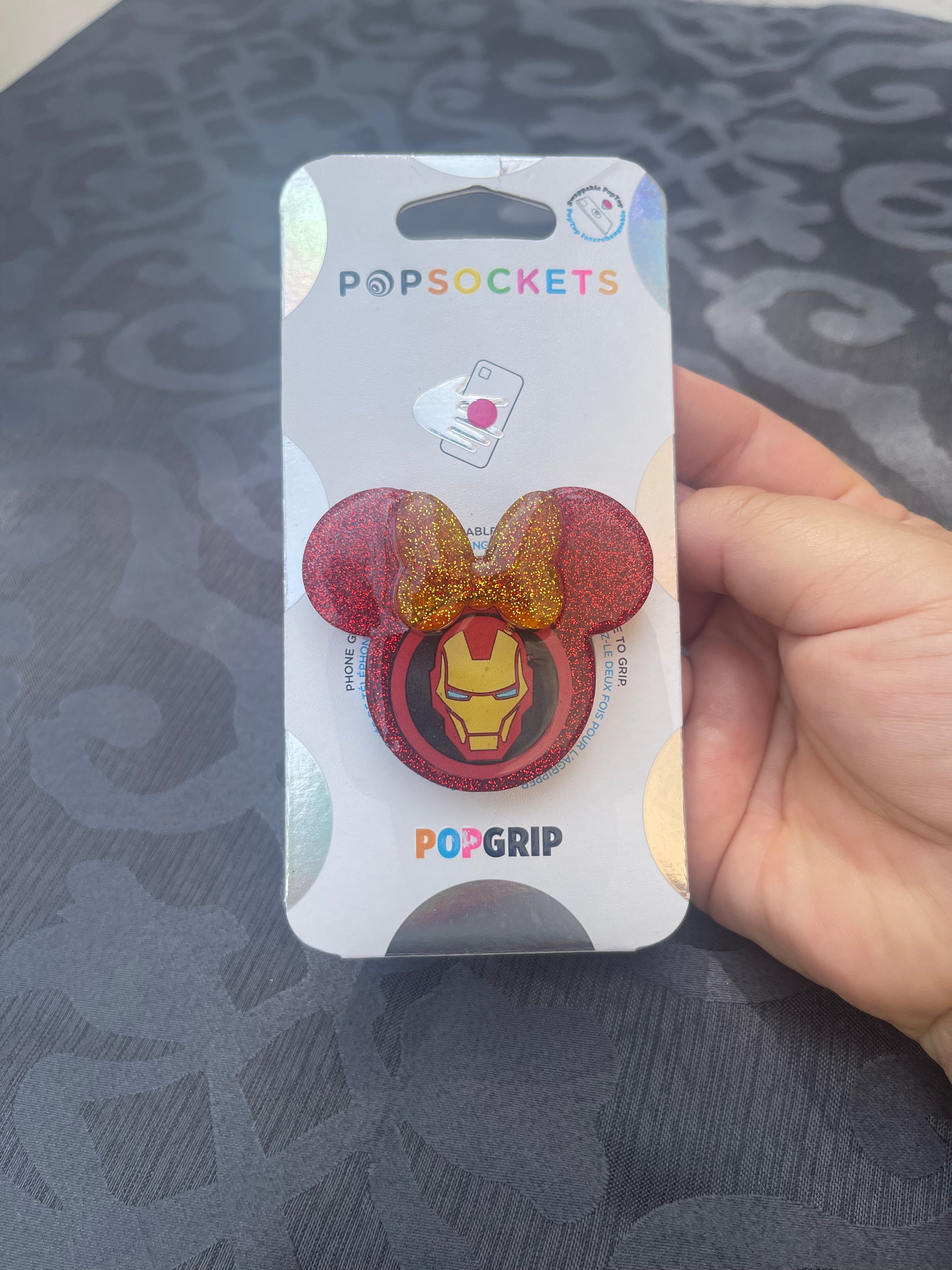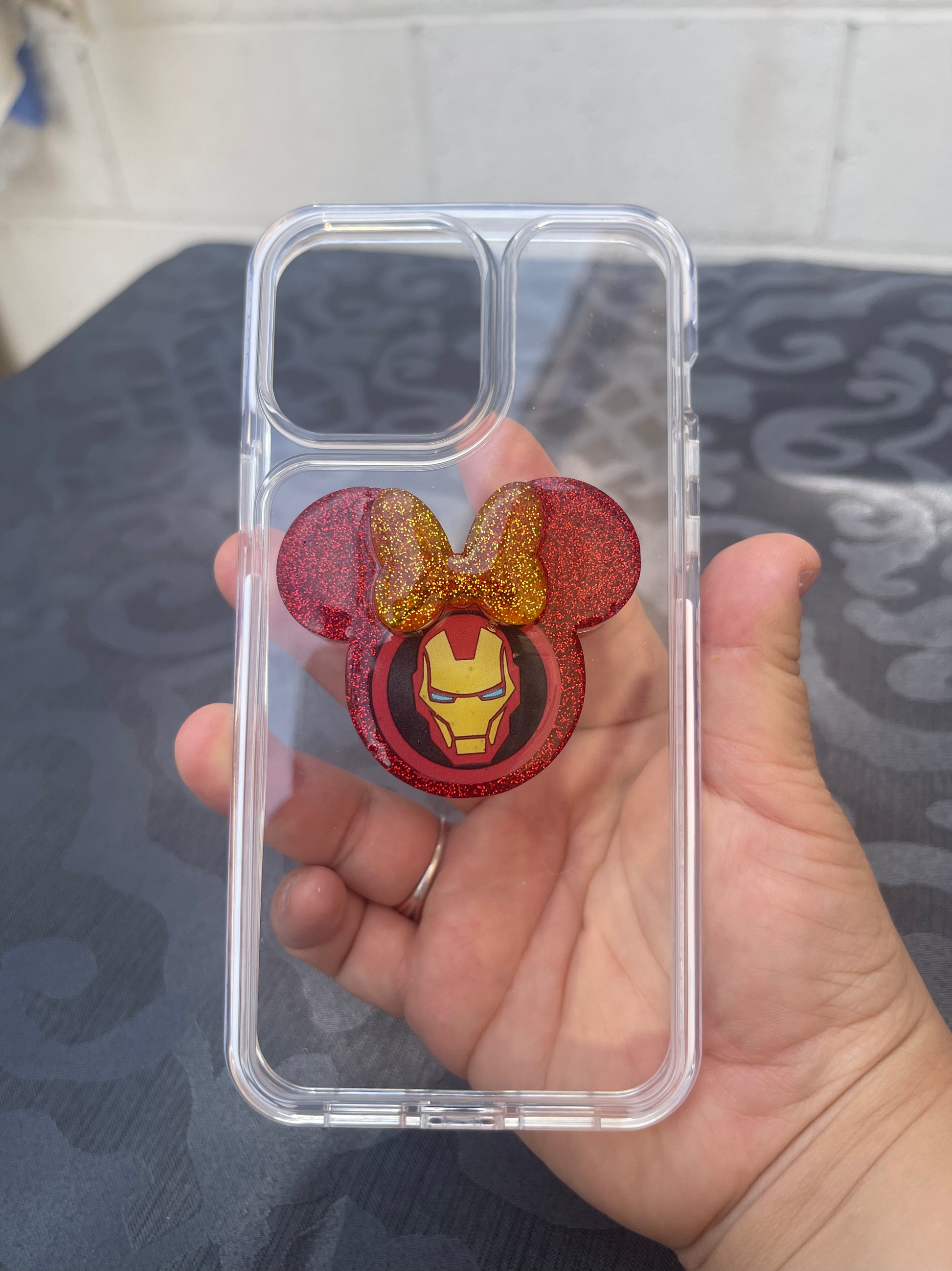 Iron Man Mouse w/bow phone grip in Red with a Gold bow