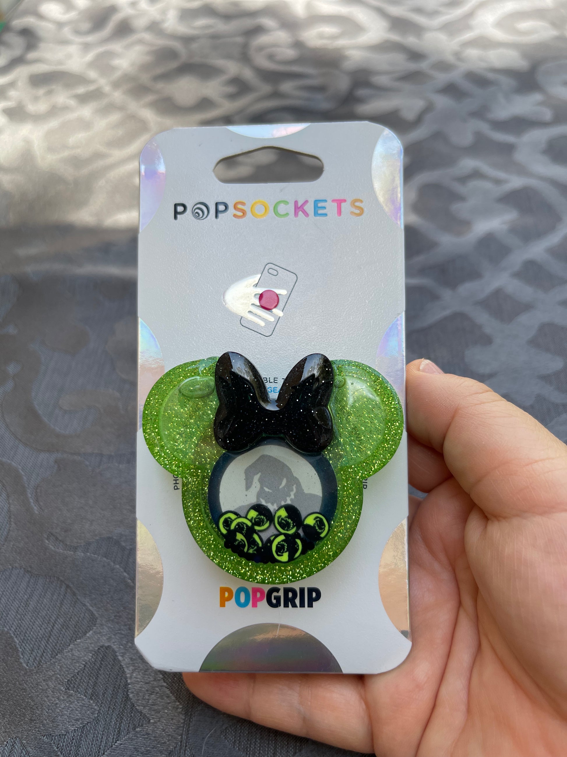 Oogie Boogie mouse w/bow Shaker Phone Grip-Neon Green