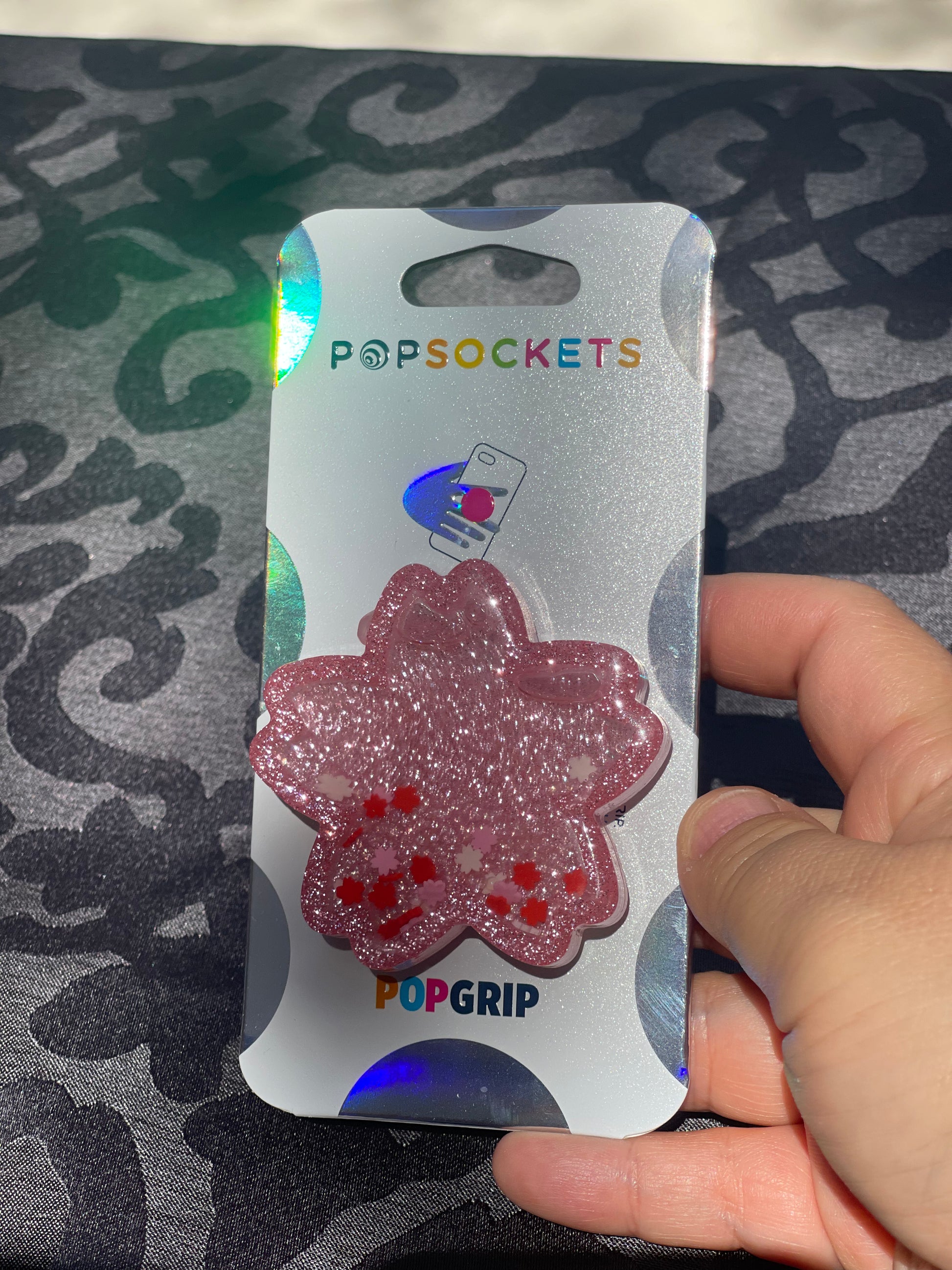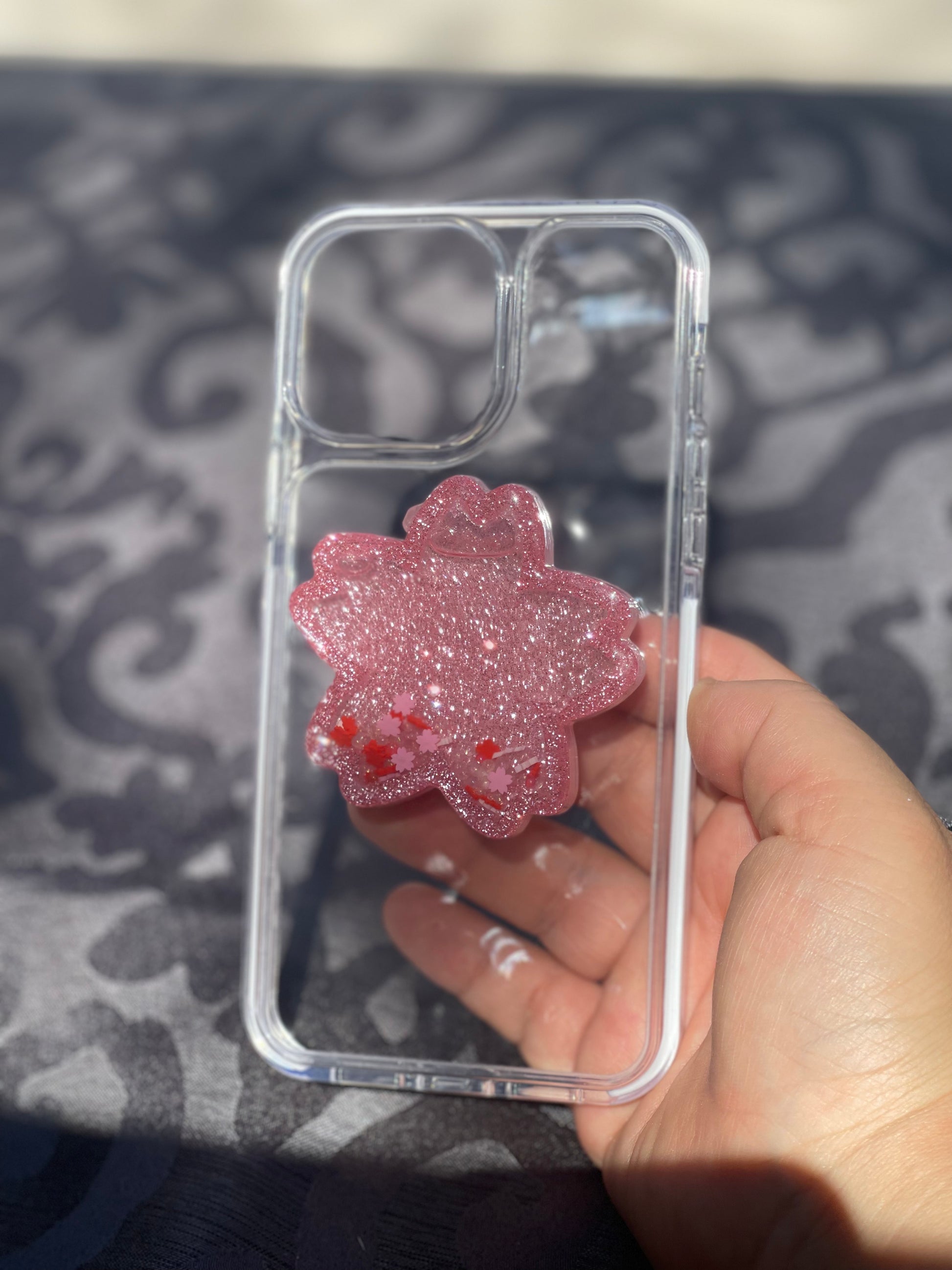 Sakura Flower Shaker phone grip in Pink filled with mini sakuras and beads