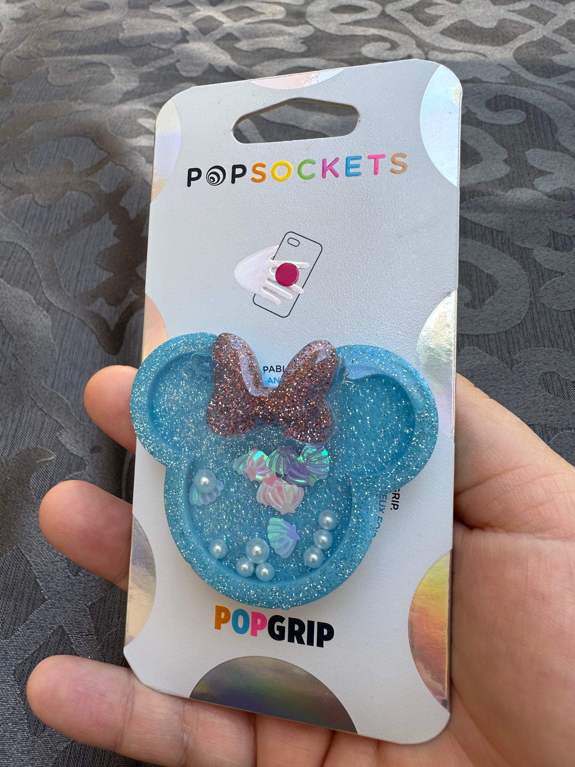 The Ocean is calling Mouse w/bow Shaker Phone Grip-Blue