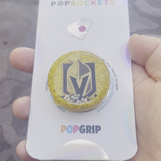 VGK circle shaker phone grip in Gold with VGK colored beads inside.